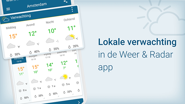 Ben je een fietstocht aan het plannen of wil je weten of je vrienden van de zon genieten op Madeira? Met de lokale weersverwachting in de Weer & Radar app kun je met één tik het weer overal ter wereld bekijken.