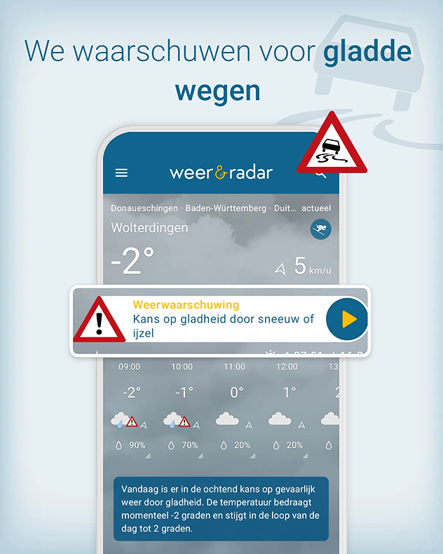 Nauwkeurige verwachtingen zijn vooral belangrijk wanneer het weer omslaat. De app waarschuwt je voor stormen, gladde wegen, onweer of aanhoudende regen, zodat je je plannen tijdig kunt aanpassen, een veilige plek kunt zoeken of je eigendom kunt beschermen.
