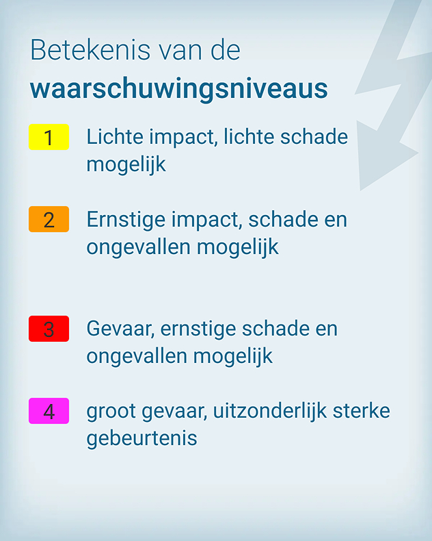 De kaart met waarschuwingen voor noodweer geeft een overzicht van de landelijke waarschuwingssituatie. Je ziet in één oogopslag waar extreem weer wordt verwacht, nu en in de komende 48 uur.