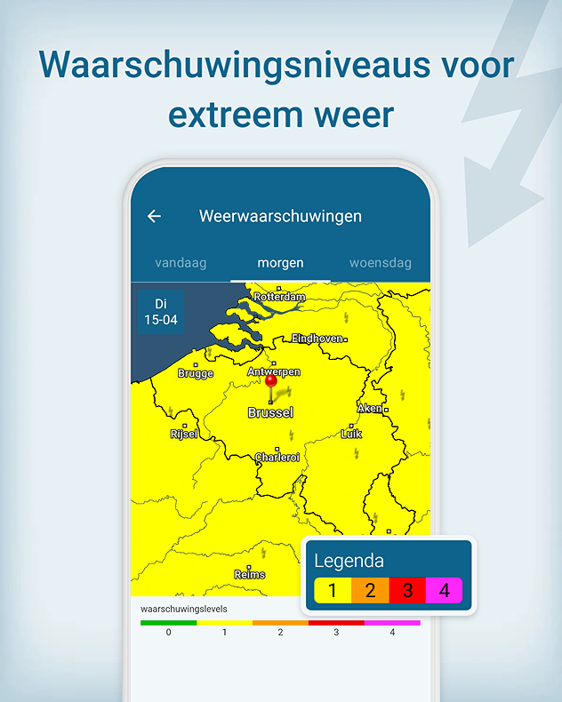 Onze fotogalerij laat je zien waar je de kaart met waarschuwingen voor extreem weer kunt vinden in de Weer & Radar app en welke informatie deze weergeeft: