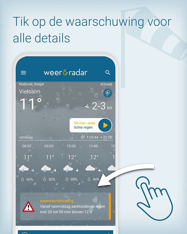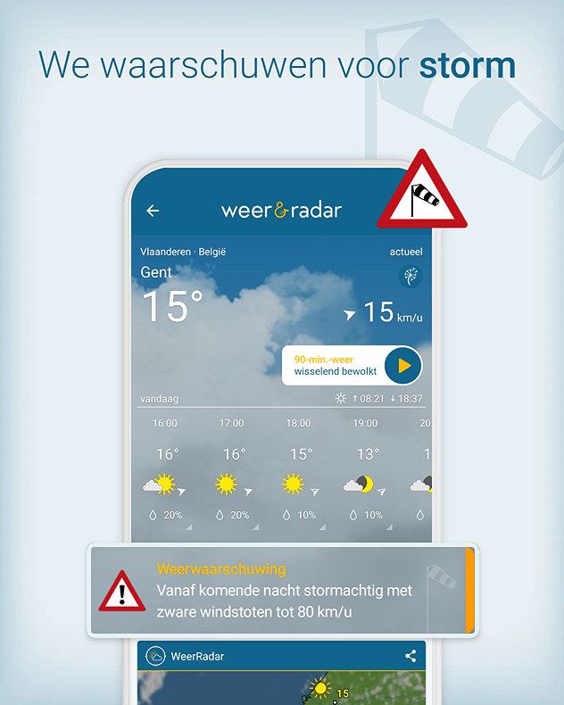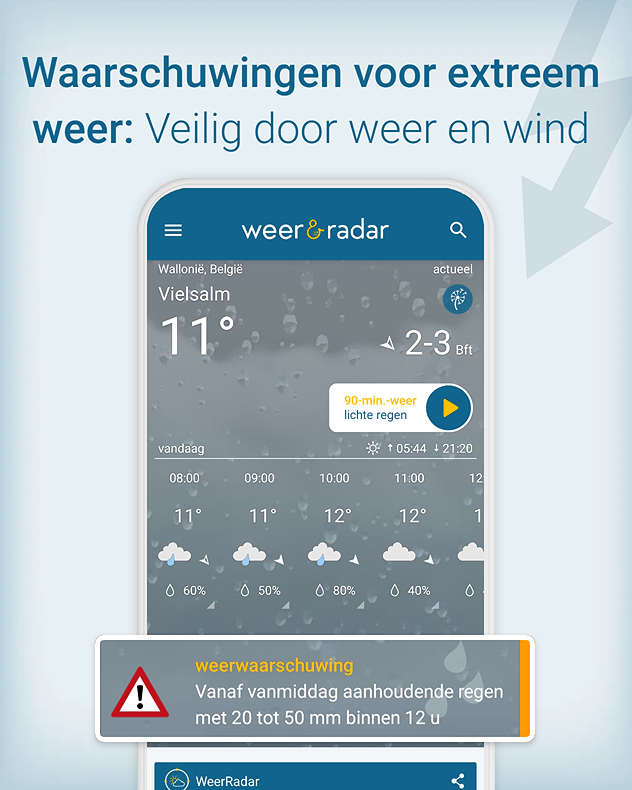 De weerradar in de Weer & Radar app is de perfecte tool om het meeste uit je dag te halen.