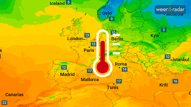 Al merkbaar milder in Zuidwest-EuropaTemperatuurRadar voor zaterdag