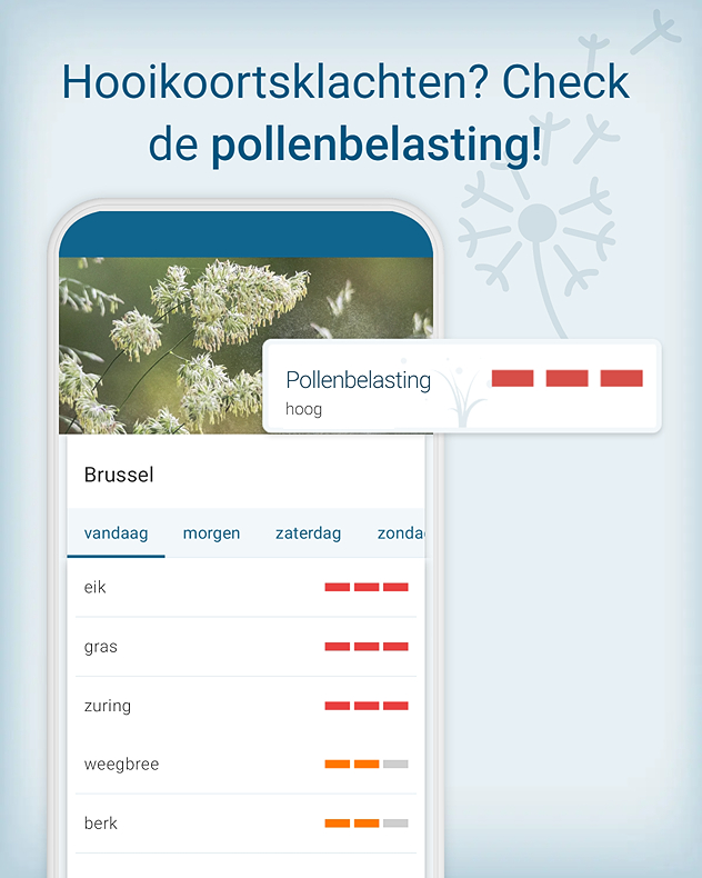 Met de uitgebreide polleninformatie, inclusief een verwachting voor de komende dagen, blijf je goed op de hoogte van het hooikoortsseizoen: