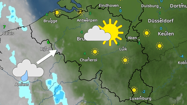 Woensdag en donderdag staat er wat minder wind. De zon krijgt de mist en lage bewolking van de nacht en ochtend dan niet of nauwelijks weg. Het blijft vaak grijs bij zo'n 9 of 10 graden in de Ardennen en maximaal 13 of 14 graden elders. Vrijdag en zaterdag breekt de zon wel gemakkelijker door. Het is daarbij elke dag droog, mogelijk zelfs tot na het volgende weekend.
