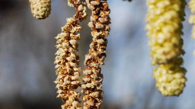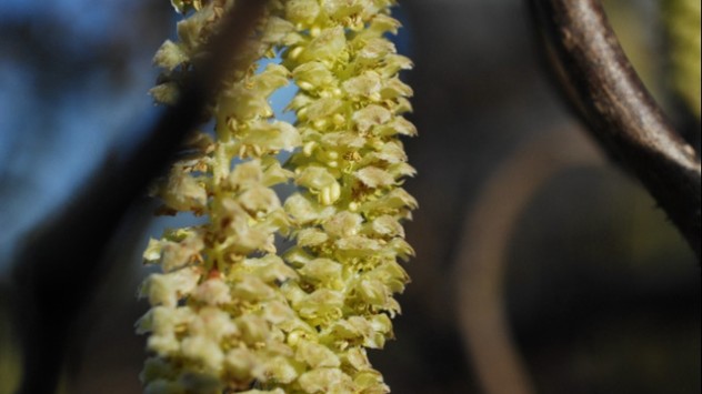 Het gaat om pollen van de els en de hazelaar. Beide soorten zijn typische winterbloeiers, die in zachte winters vaak al eind december met de bloei beginnen. Vooral tijdens periodes met zacht weer met temperaturen boven de 8 graden, worden de katjes van de els en de hazelaar langzaam “wakker”. Vervolgens komt het stuifmeel vrij.
