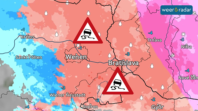 In onder andere Wenen en Bratislava is de overlast door ijzel groot.