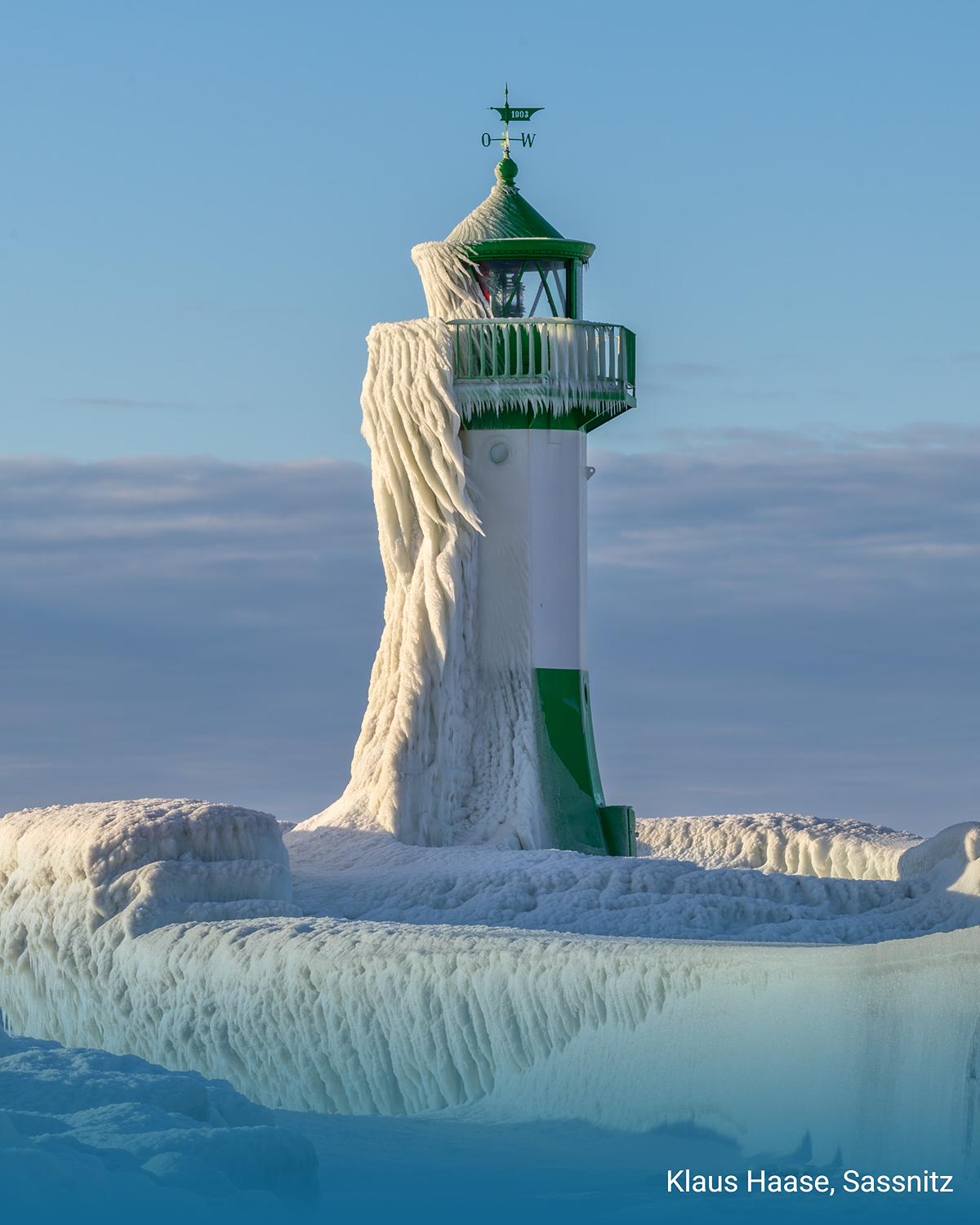 De Oostzee is stil geworden. Waar normaal gesproken golven breken, heeft de kou de zee tot zwijgen gebracht. Onze fotoreeks toont indrukwekkende ijsfoto's vanuit Sassnitz op Rügen: metershoge ijsschotsen, bizar bevroren rotsen en een vuurtoren die in een mantel van ijs is gehuld.