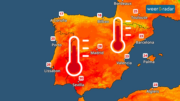 Op het Iberisch schiereiland zijn de temperaturen momenteel ongewoon hoog voor de tijd van het jaar. In het zuiden van Spanje en Portugal en in de Ebro-vallei zal de thermometer vanaf donderdag rond de 30 graden aangeven.