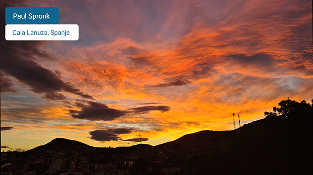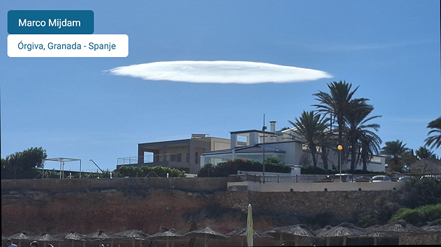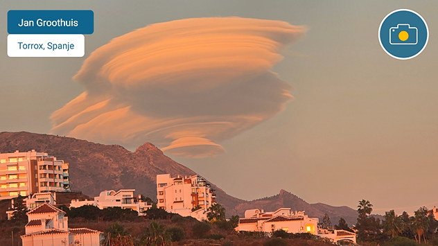 In onze Weer&Radar uploader ontvingen we een indrukwekkende foto van een lenticulariswolk boven Torrox in Zuid-Spanje. De foto laat een prachtige schotelwolk zien die door de lage avondzon in warme tinten wordt opgelicht.