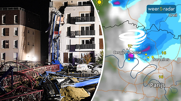 De weerkaart voor donderdag toont een actieve storing net ten noorden van de Benelux met mogelijk zeer zware windstoten.