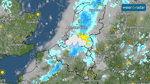 In het westen valt de eerste neerslag al in de ochtend. Pas later in de middag breidt deze zich verder naar het oosten uit. Achter het front klaart het in de avond vanuit het westen weer op.