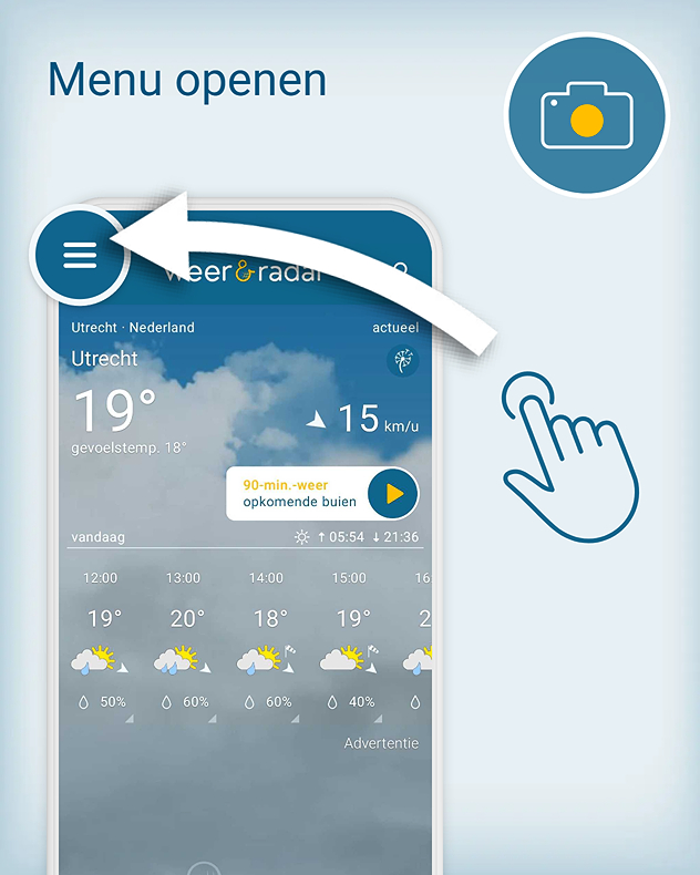 Je kunt je weerfoto direct via www.weerenradar.be/upload sturen of als volgt via de Weer&Radar app: