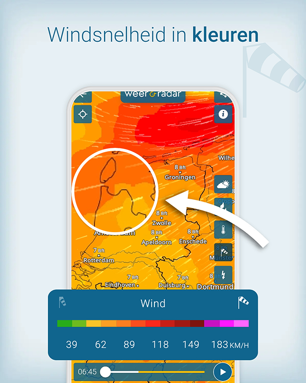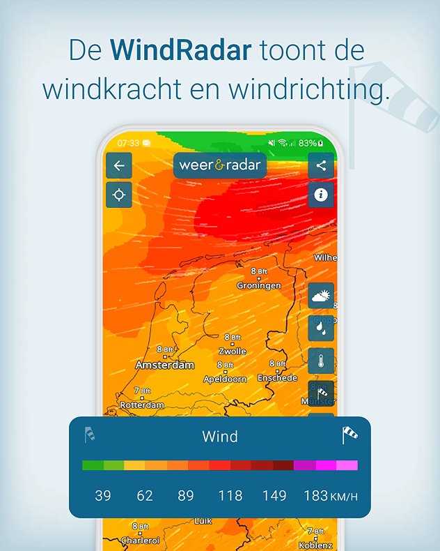 Windradar van Weer&Radar - Perfect op de hoogte over de storm