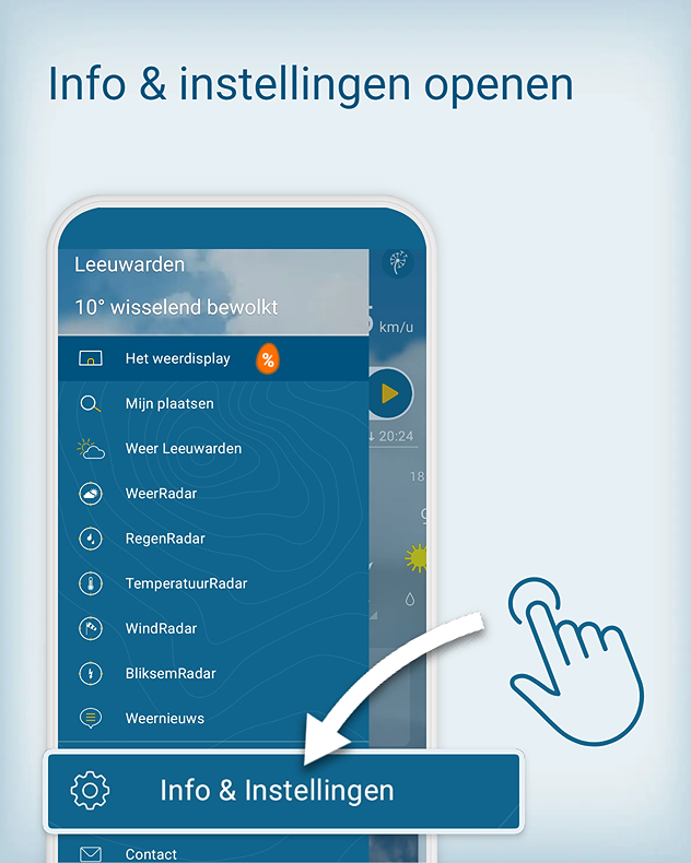 In onze fotogalerij ziet je hoe je eenvoudig kunt overschakelen van de WeerRadar naar de WindRadar van de Weer & Radar app en wat je daarop kunt zien: