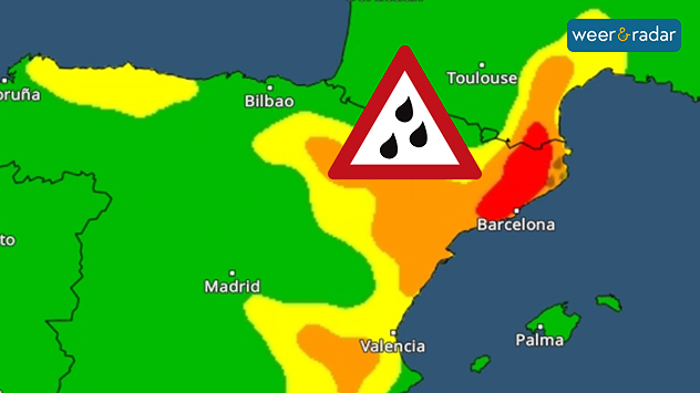 Een depressie zorgt de komende dagen voor hevige regenval, vooral in Spanje. Met name langs de Middellandse Zeekust van Valencia via Barcelona tot aan de Pyreneeën valt tot het weekend 50 tot 100 millimeter regenwater. In de Pyreneeën is dat plaatselijk zelfs meer dan 200 millimeter.