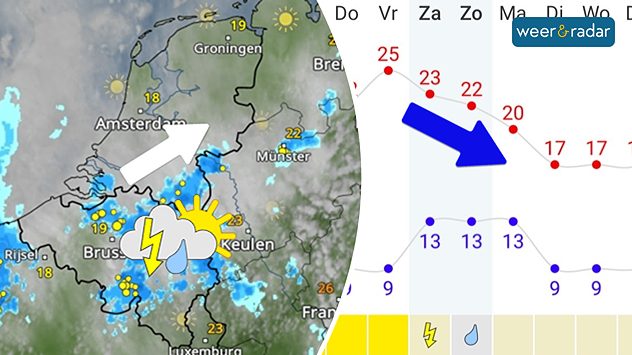 In de nacht is het eerst nog zwaar bewolkt, maar het blijft droog. De temperatuur bedraagt momenteel 12 graden. Vandaag schijnt de zon af en toe, maar er staat een vlagerige wind. De temperaturen bereiken maxima rond de 20 graden.