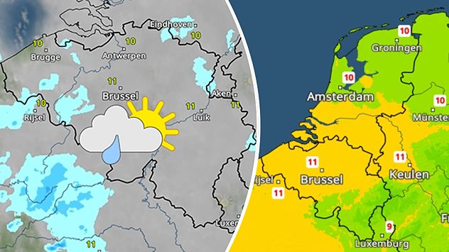 Vandaag is het in de middag en avond bewolkt en het regent. De temperatuur bedraagt momenteel 13 graden en koelt later tot ongeveer 11 graden af.