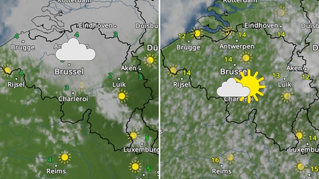 Vandaag is het de hele dag zonnig. De temperatuur bedraagt momenteel 8 graden en stijgt in de loop van de dag tot 12 graden.